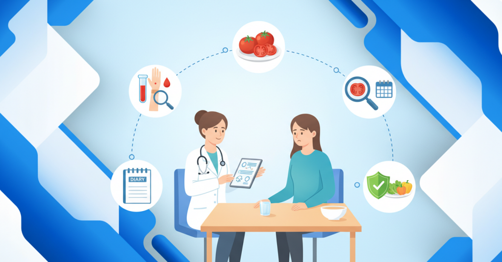 Элиминационная диета — это не анализ, а диагностический приём. Суть: на 2–4 недели полностью убрать томаты из рациона и наблюдать, уйдут ли симптомы. Потом — повторное введение продукта и оценка реакции. Важно делать это под контролем врача, особенно если были серьезные симптомы.