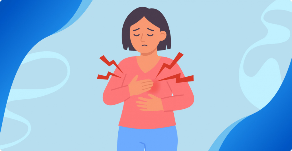— Односторонняя боль в груди, особенно если она новая и не связана с циклом. Асимметрия ощущений, когда болит только одна сторона — повод показаться маммологу.