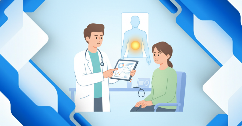 Тупая ноющая боль характерна для хронических процессов в органах пищеварения: гастрита, холецистита (воспаления желчного пузыря), хронического панкреатита. Она может длиться часами, усиливаться после жирной пищи или алкоголя, сопровождаться тяжестью и вздутием. Это не «кричащая» боль, но назойливая — она портит аппетит, мешает сосредоточиться и со временем выматывает.