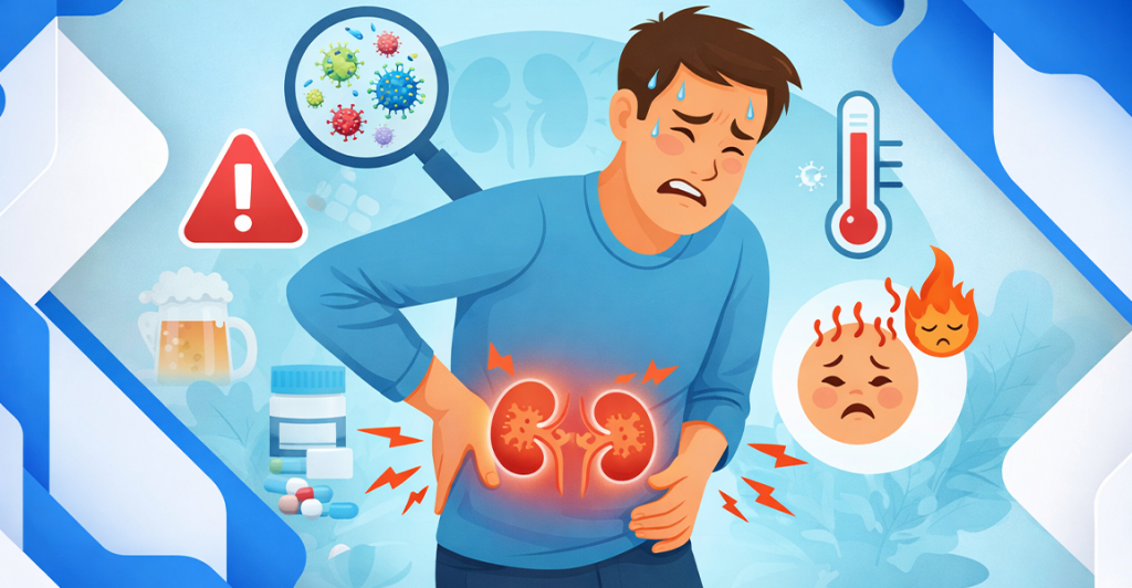 Сценарий 3: Простуда, ОРВИ и «осложнение на почки» Переболели гриппом или ангиной, вроде выздоровели, но через неделю появилась тупая боль в боку, поднялась температура, стала мутная моча. Это классическая картина постинфекционного пиелонефрита. Бактерии из других очагов (горло, нос) могут «спуститься» в мочевые пути и вызвать воспаление. Поэтому любая боль после инфекции, особенно с лихорадкой и изменениями в моче, требует внимания.