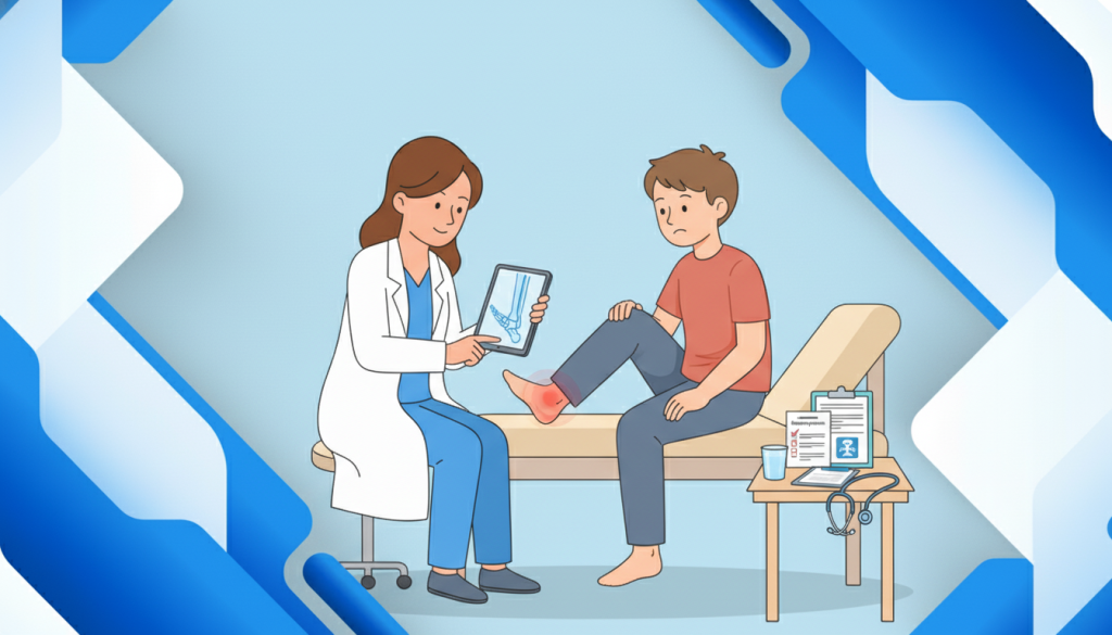 Всё начинается с разговора. Врач спросит: когда появилась боль, что ей предшествовало, где именно болит, как меняются ощущения в течение дня, усиливается ли дискомфорт при ходьбе или в покое, была ли травма — даже лёгкая.